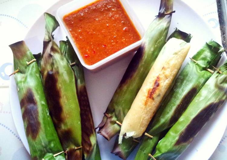 - Lalu taruk adonan di daun dan bentuk seperti pepes sampai adonan habis.(biasanya saya coba bakar satu dulu untuk coba rasa,kalau di rasa kurang asin bsa di tmbh garam,krn selera rasa tiap org beda,jd bisa di koreksi dulu rasanya baru di lanjutkan di bungkus semua adonannya smpk hbs)